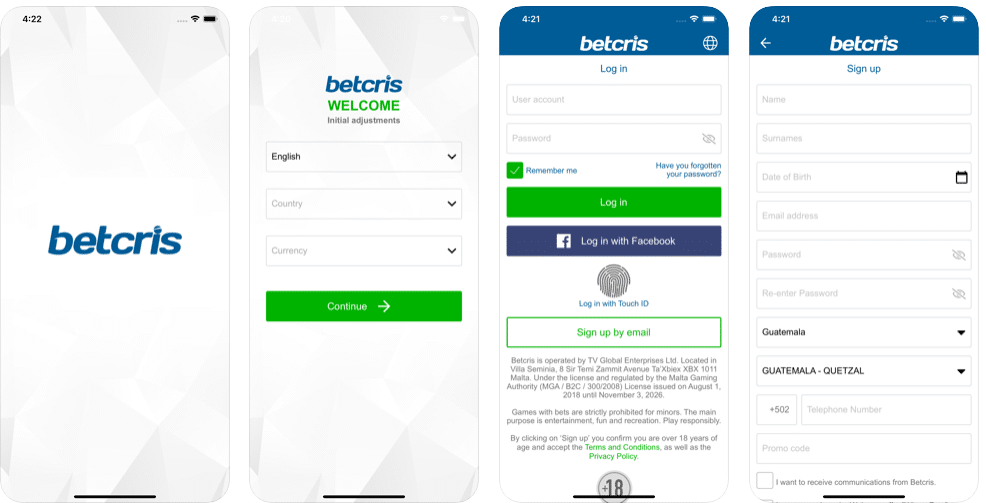 Apostando desde la APP de Betcris