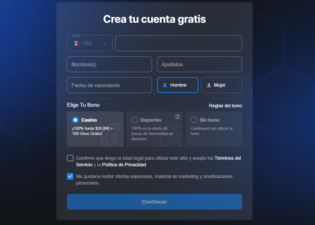 Para los amantes del casino, Betmaster ofrece un bono de bienvenida que iguala el 100% de tu primer depósito, hasta 20,000 MXN, y además incluye 100 giros gratis.